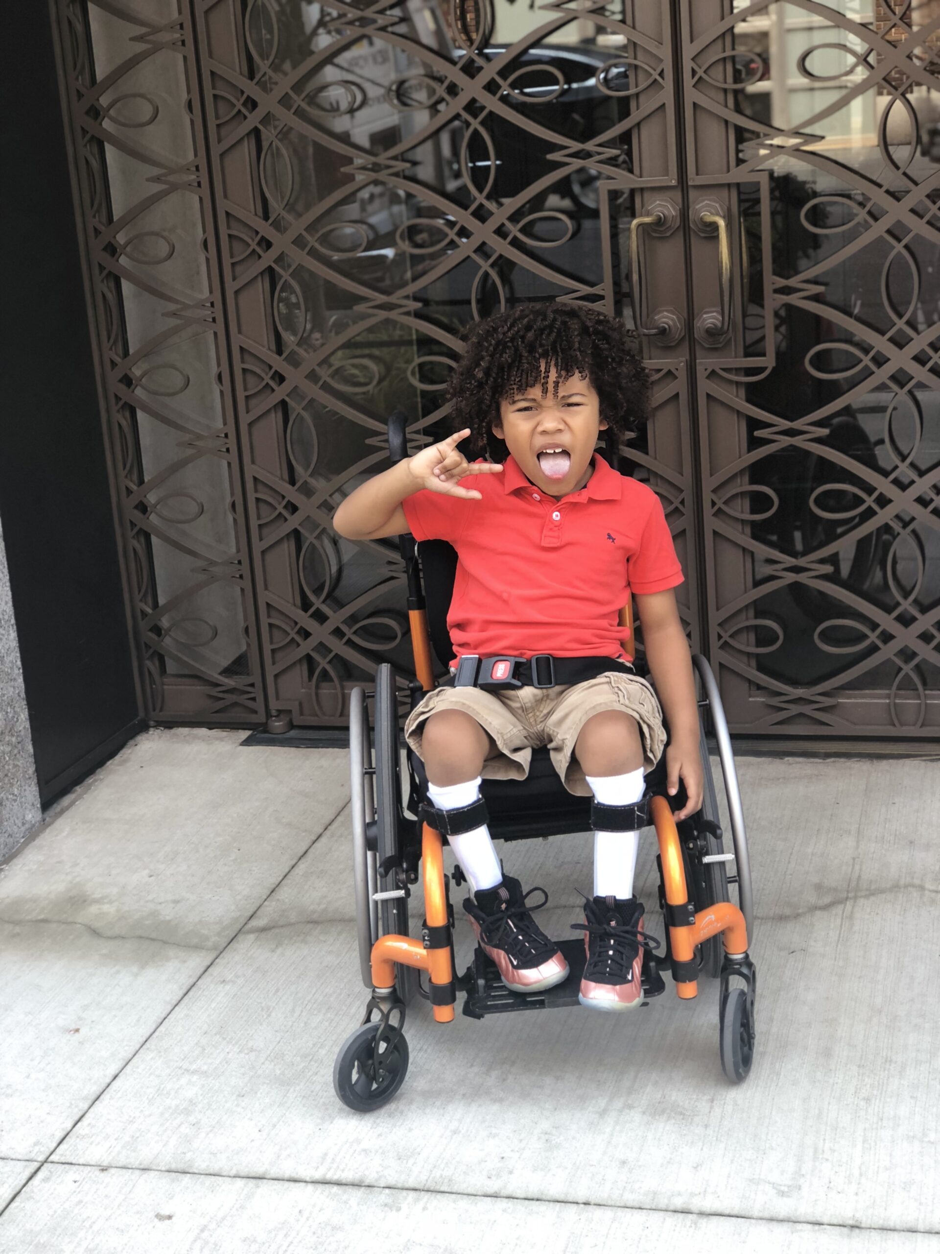 Aydin now goes to Yale for physical and occupational therapy. “The OT and PT at Yale are the ones that suggested a wheelchair for Aydin,” said Michelle. “At first we were really hesitant because we wanted him to walk as much as he could. Eventually we agreed and when he sat in his new chair for the first time he took off. He loved it.”