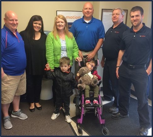 When Charley received her wheelchair – a manual Tilt-n-Space by Freedom Designs. She has started hitting developmental milestones and began attending pre-kindergarten; her chair allows her to be safely transported to and from school and interact with her classmates.