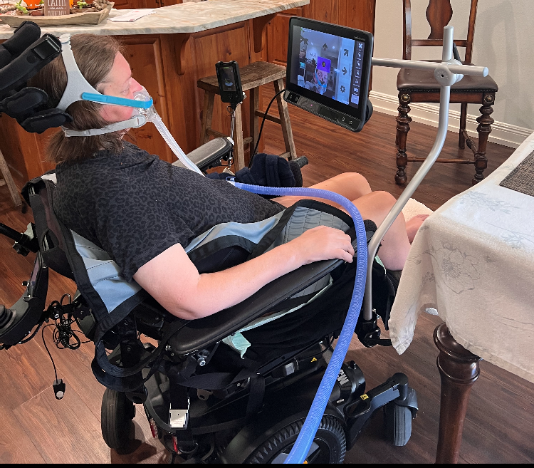 At a recent visit with Monique, Chris noticed that she was no longer able to drive her chair or control her seating system. Chris called Team Gleason together they gifted Monique the ability to move her chair with her eyes using the ability drive.