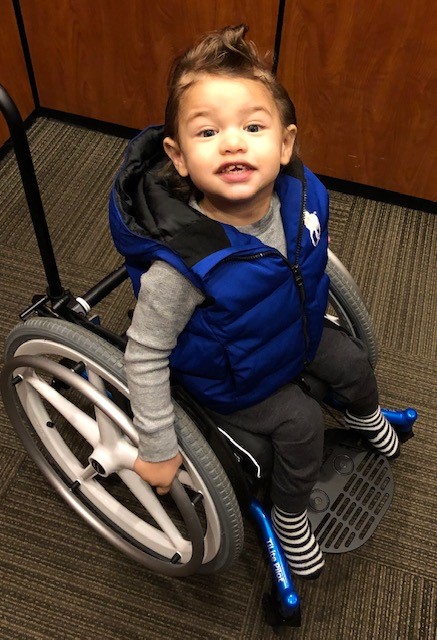 Zander loves to sit and read books with his mom and play with toys. Zander is still physically active and has learned how to compensate for his legs. While in the hospital Zander received a wheelchair. It took him several months to learn how to maneuver and control speed. Today he asks for his wheels whenever he goes places.